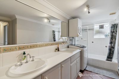 The extra large bathroom includes a shower-bath, twin basins, laundry facilities and natural light.