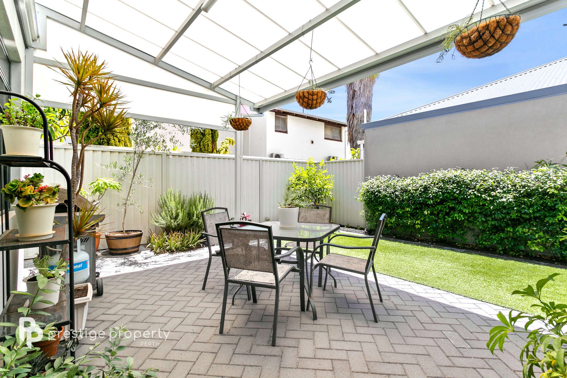 A place to relax or entertain friends is exactly what the backyard offers, with an alfresco area with pitched roof, manicured gardens, water wise synthetic lawn, as well as a rear access roller door into the large double garage.
